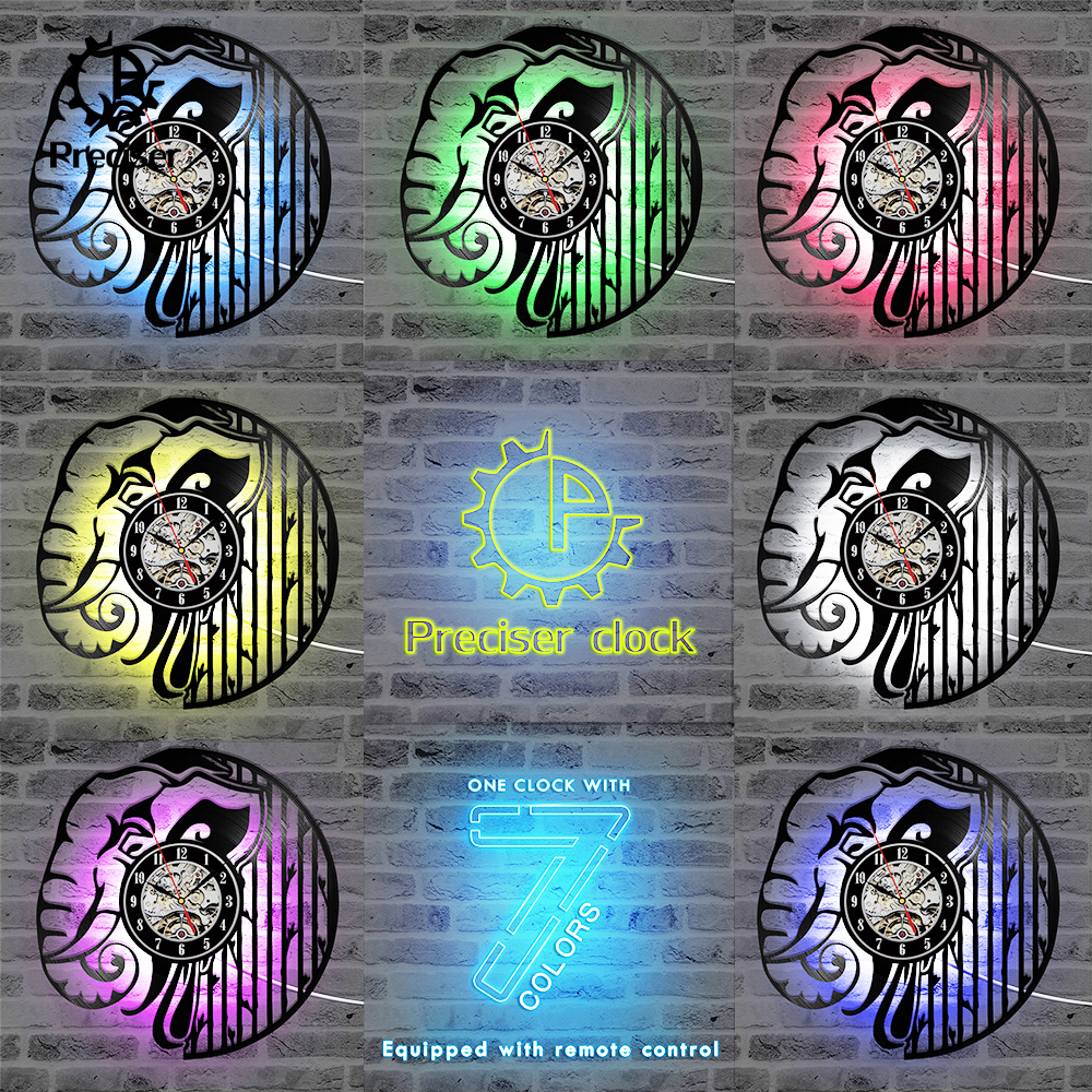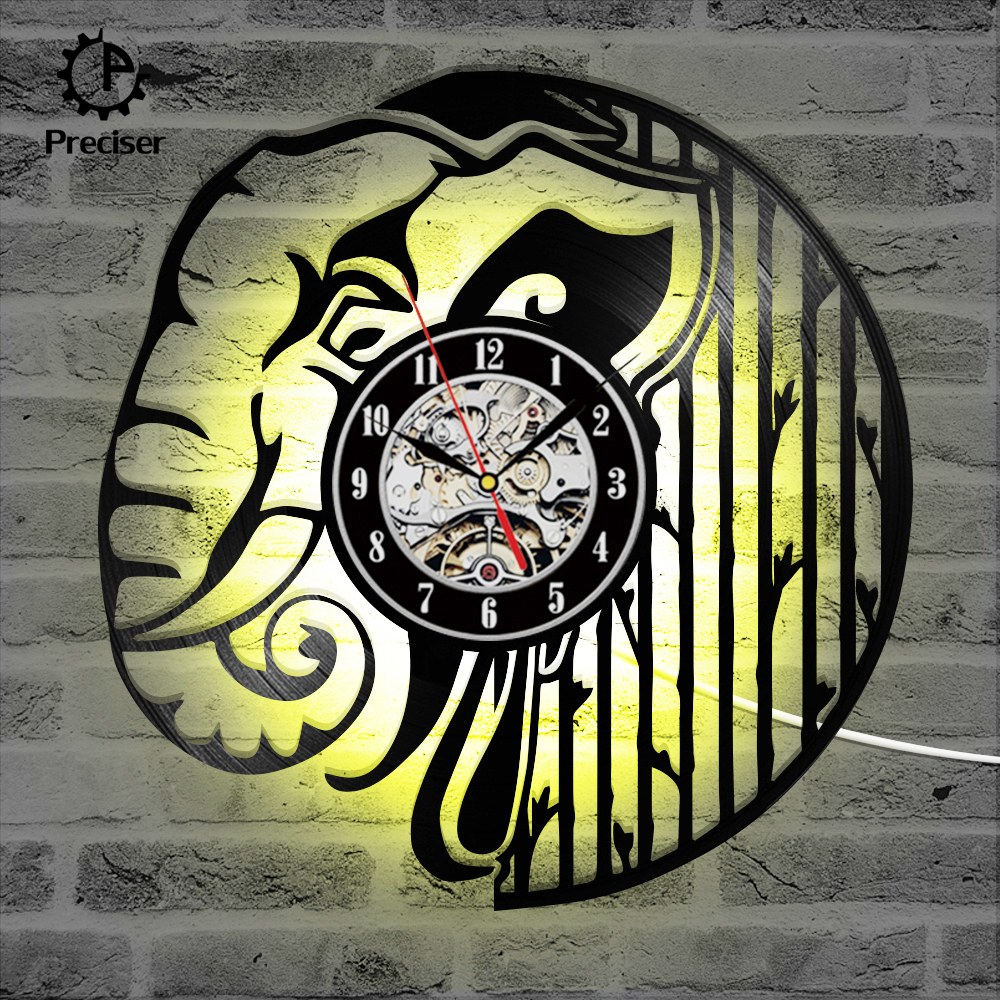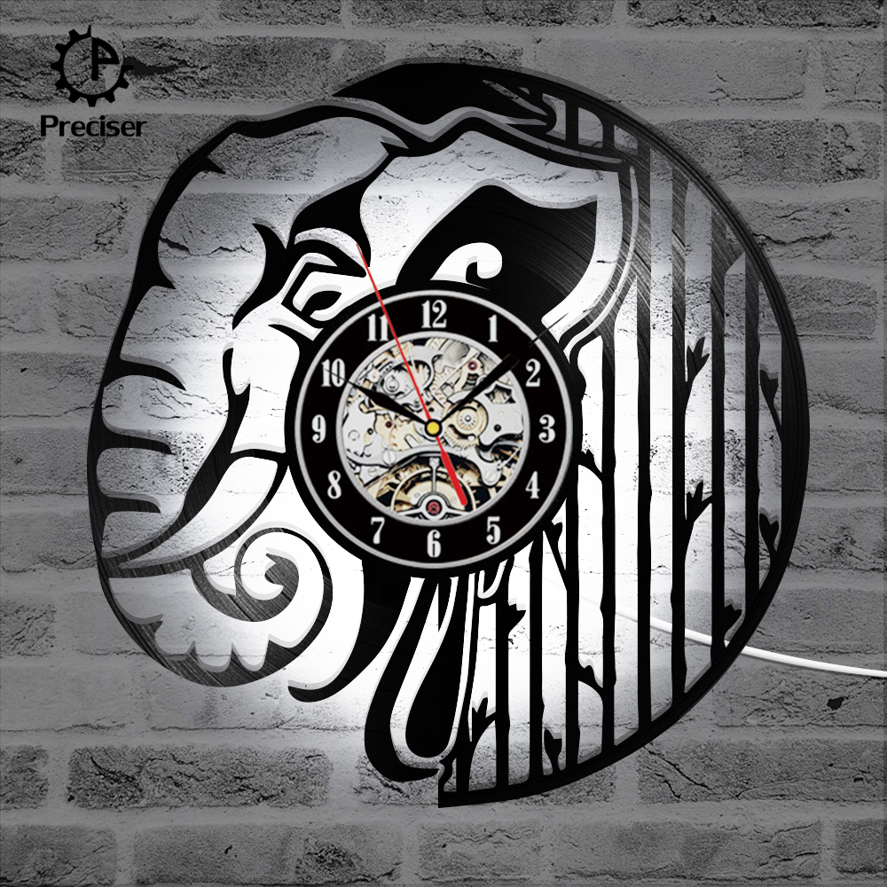 Preciser Black Hollow Elephant Vinyl Record Clock Wall Decor Home Design Handmade Minimalist Animals Kids Room Home Decor Gift