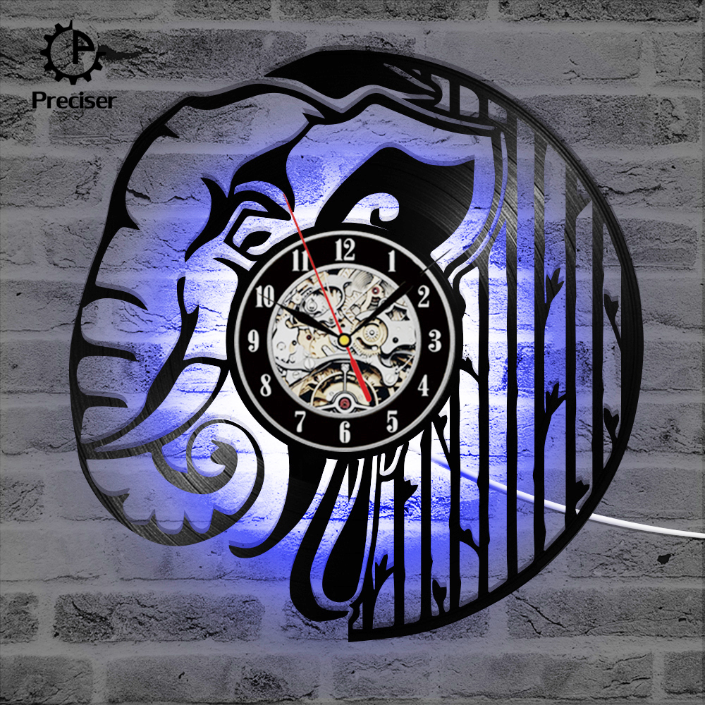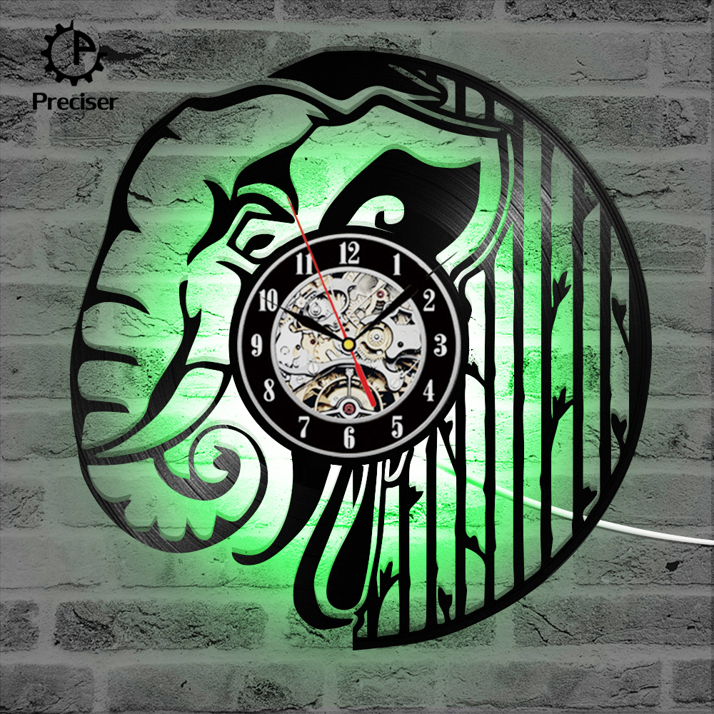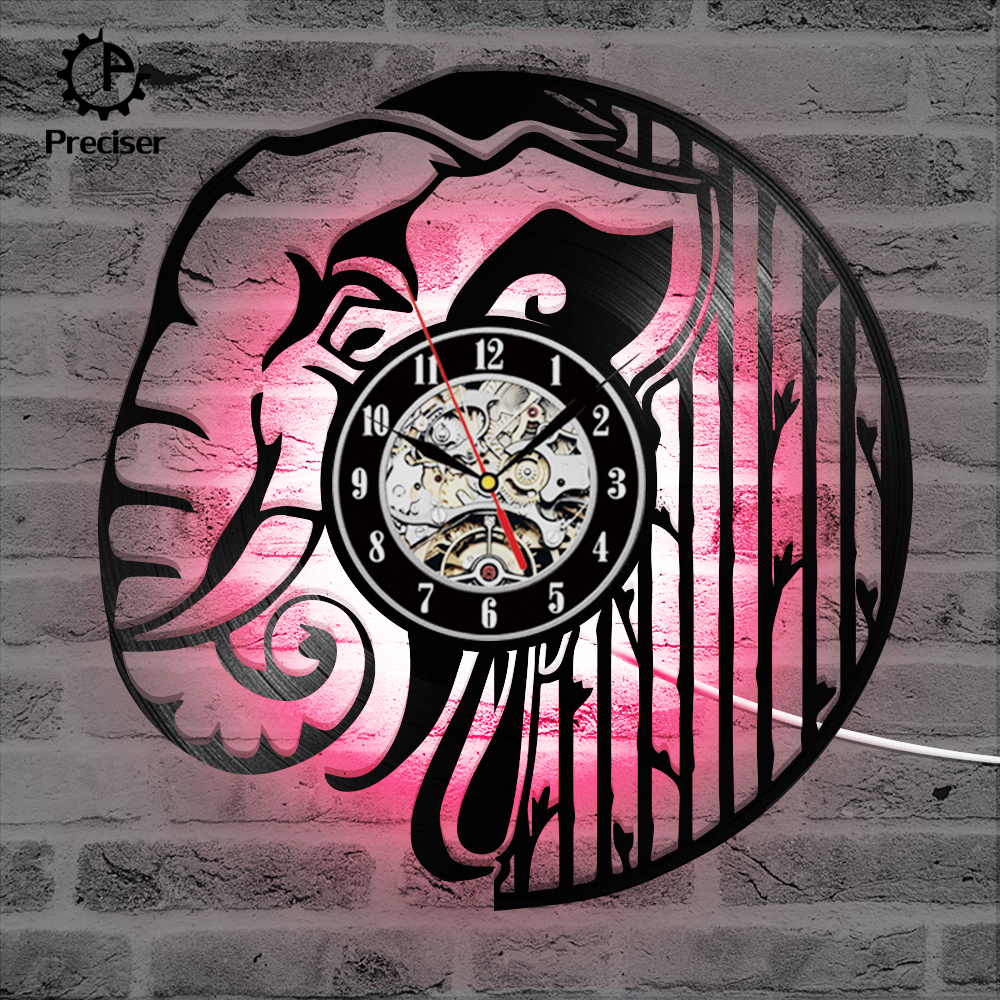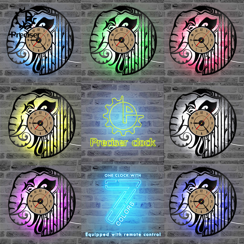 Preciser Black Hollow Elephant Vinyl Record Clock Wall Decor Home Design Handmade Minimalist Animals Kids Room Home Decor Gift