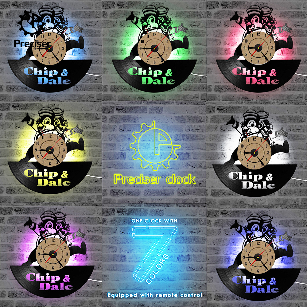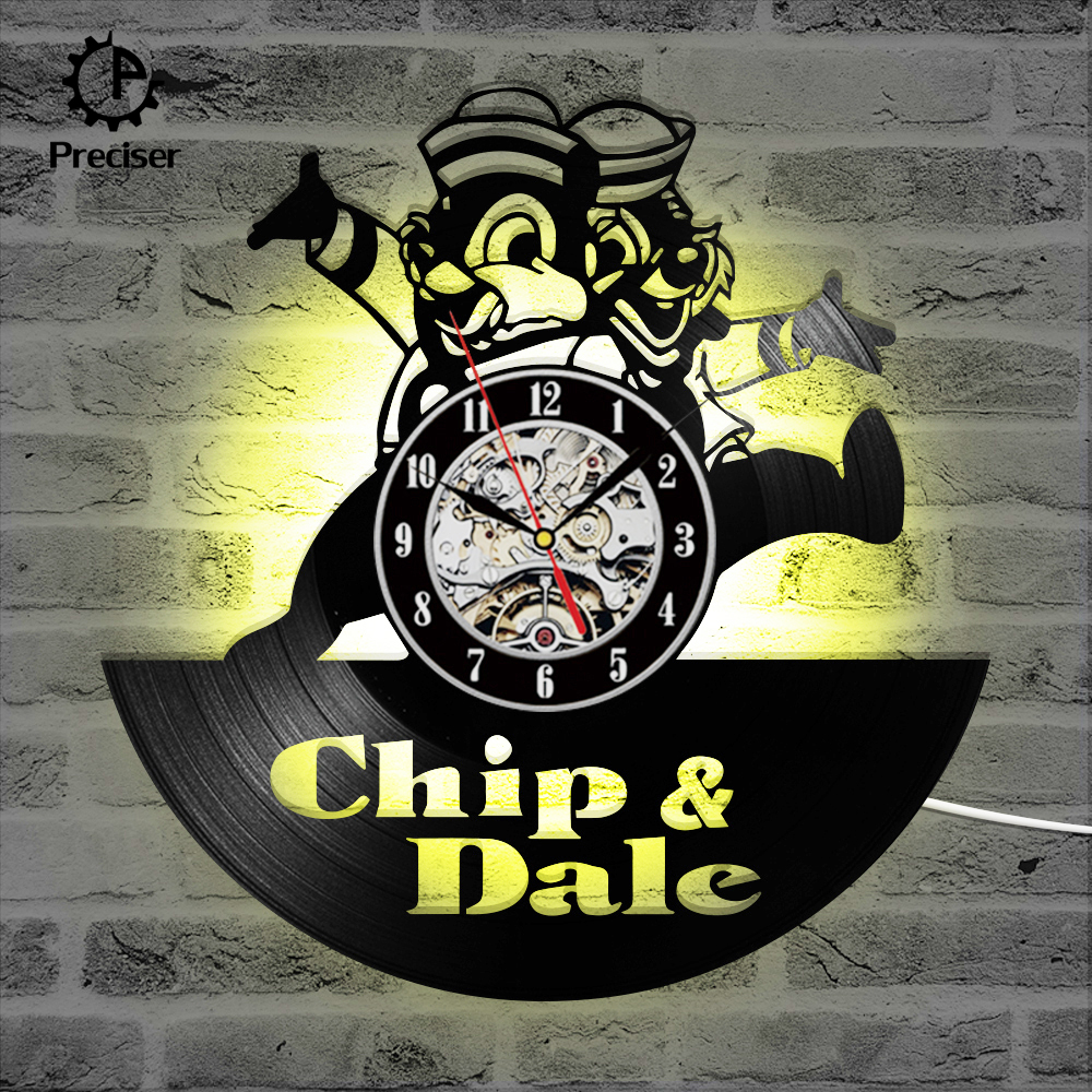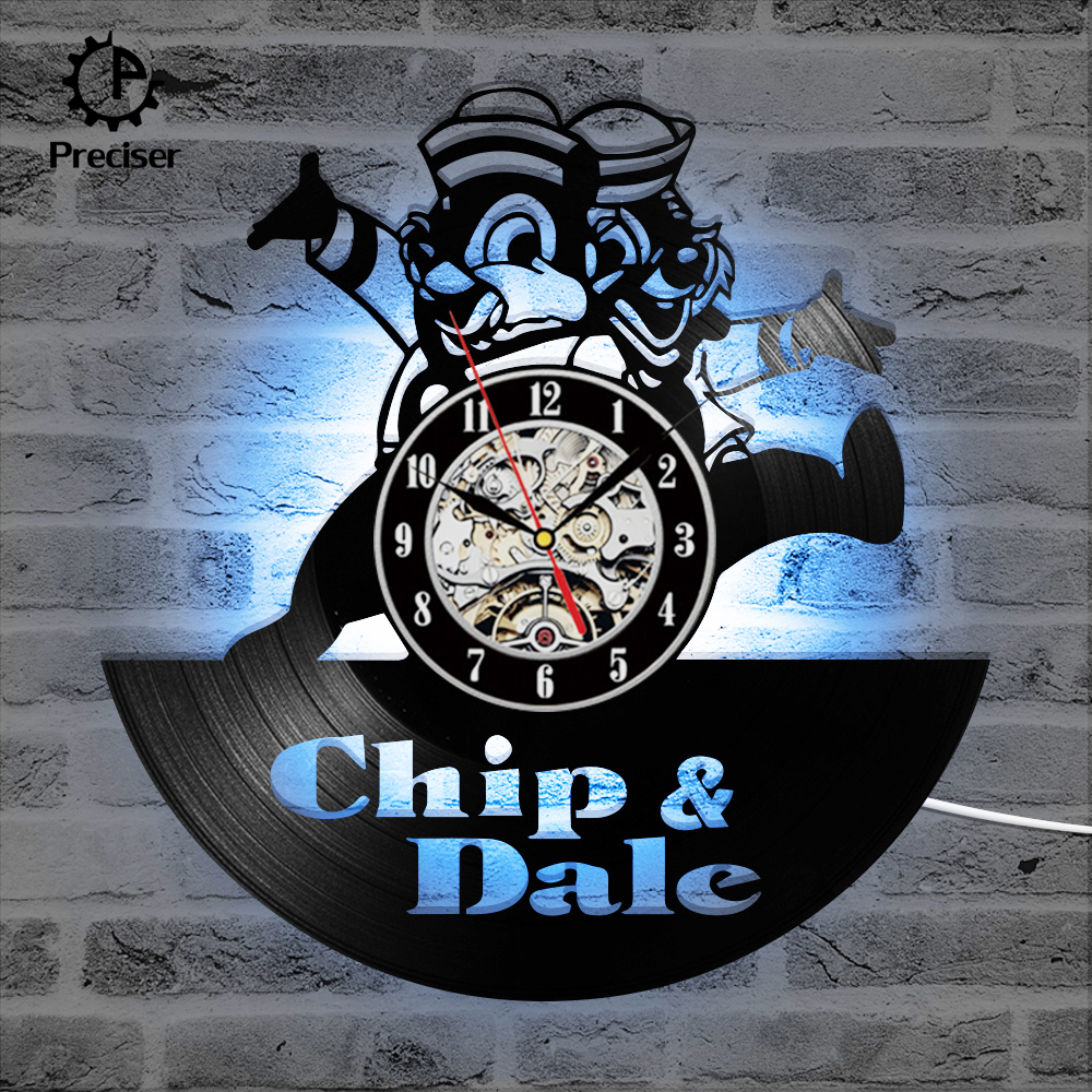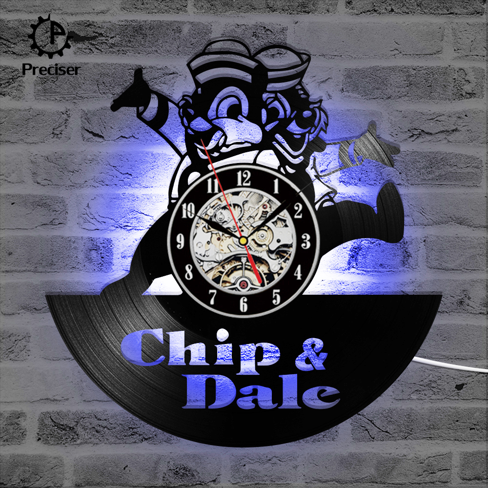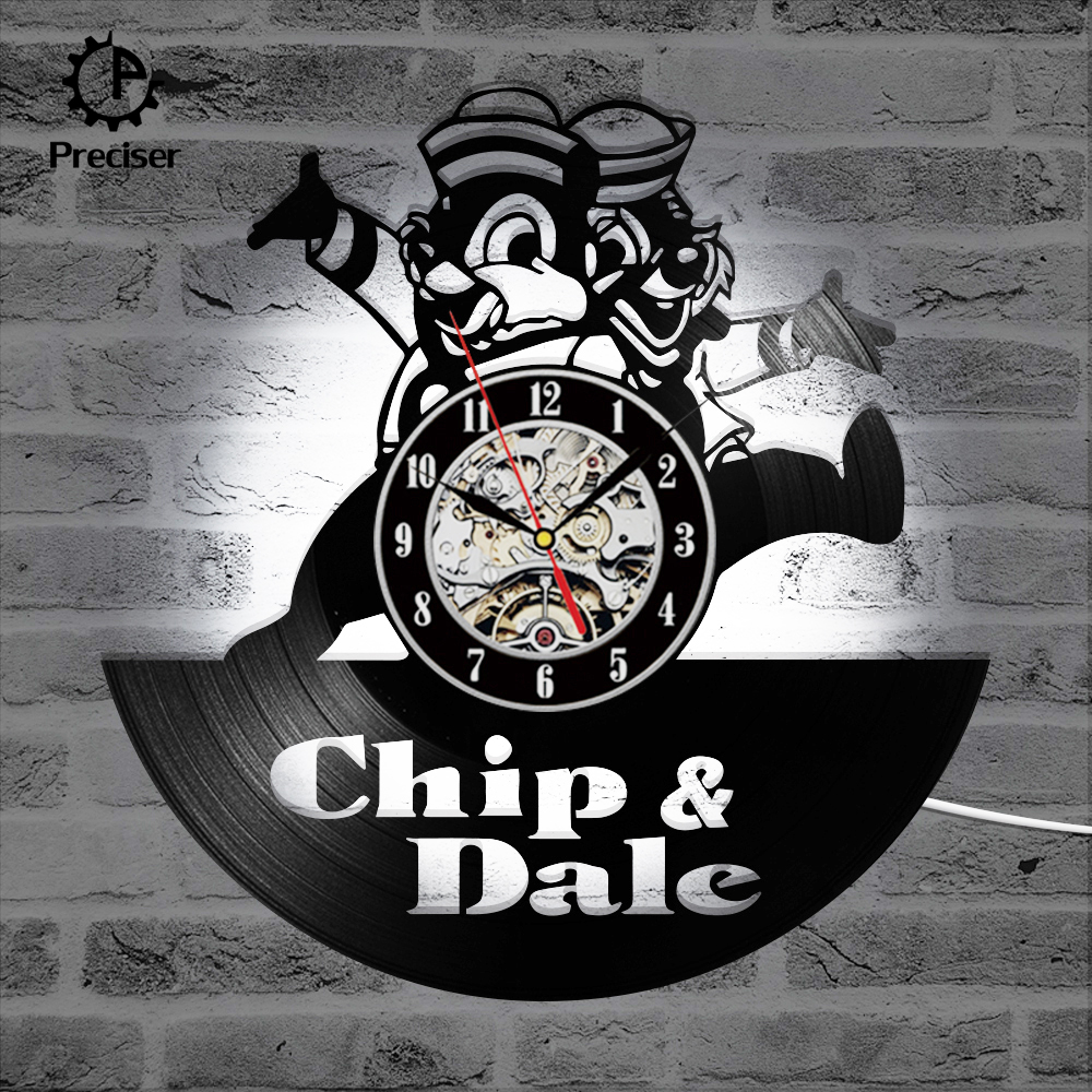 Chip And Dale Model Vinyl LP CD Record Clock Cartoon Handmade Art Decorative Hanging Wall Clocks Creative and Fashion Room Decor Clock