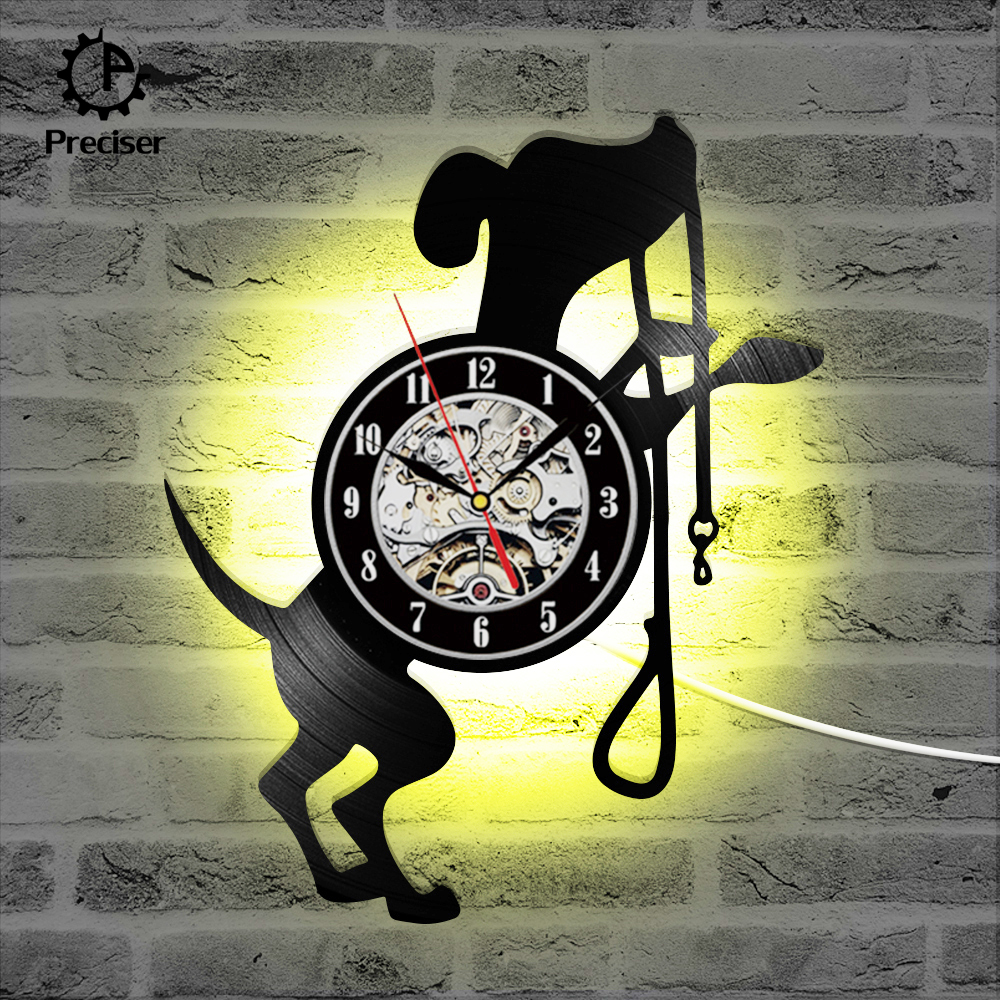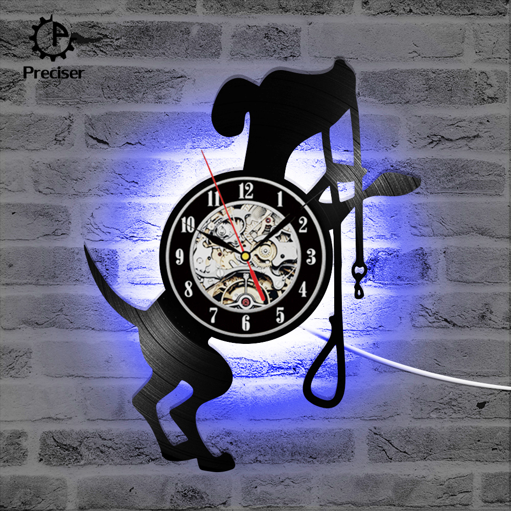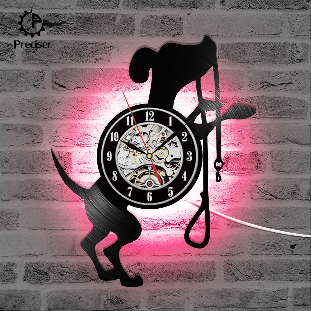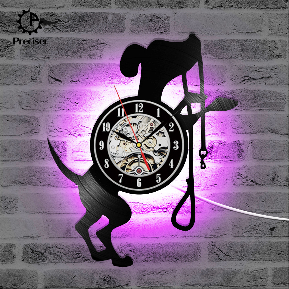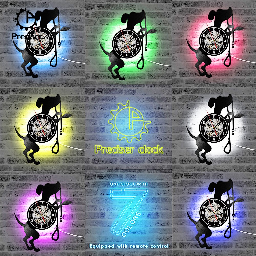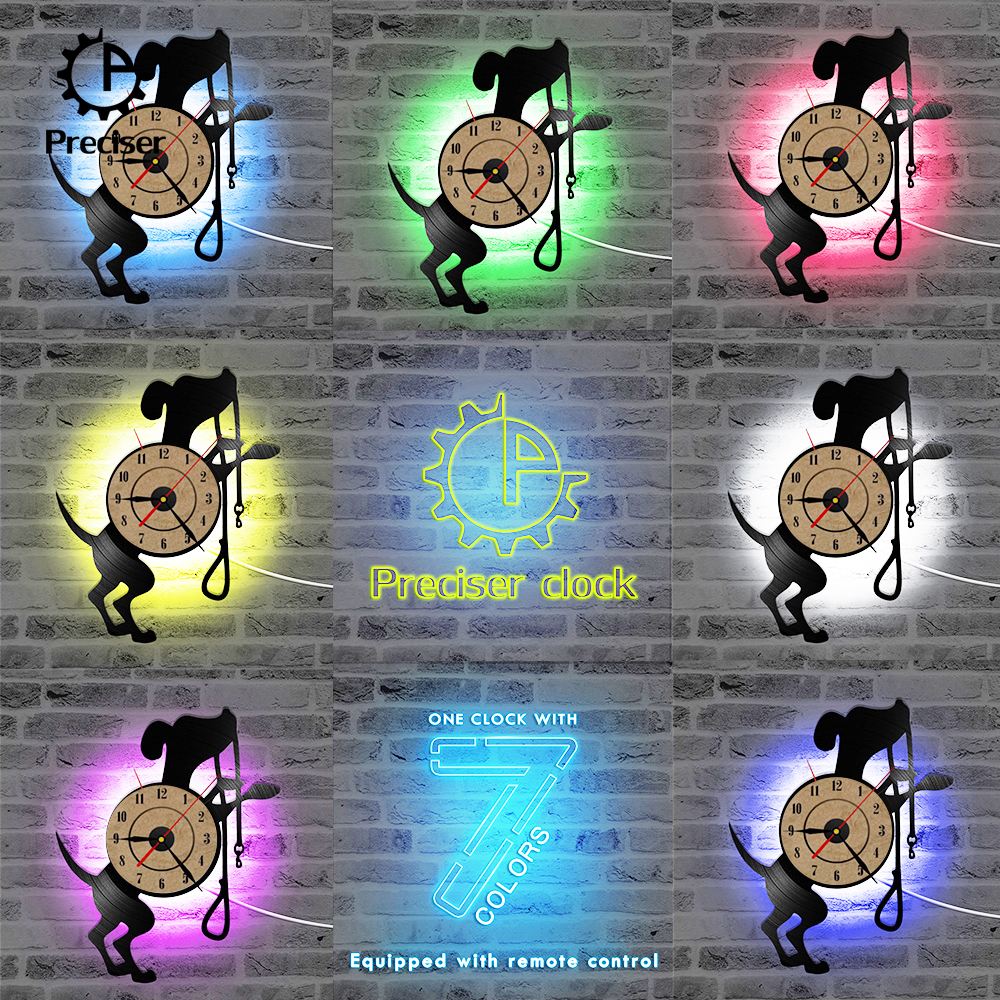Preciser Cute Vinyl Black Dog CD Record Clock Creative Fashion Kids’ Room Decorative Wall Clock Animal Design Antique Hanging Clock