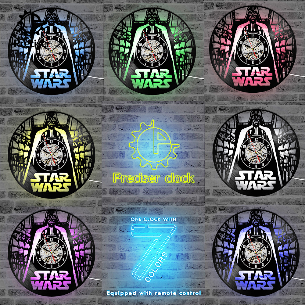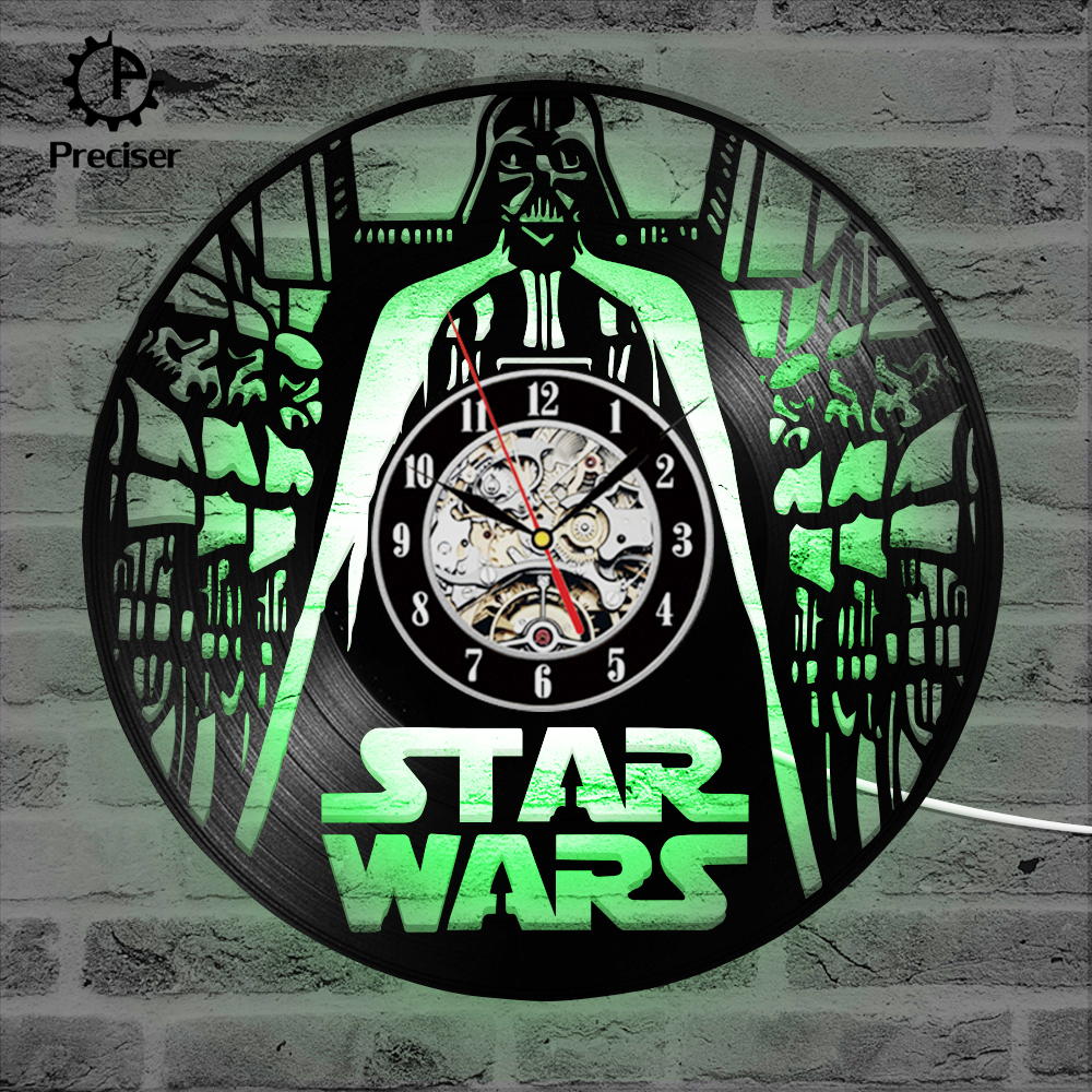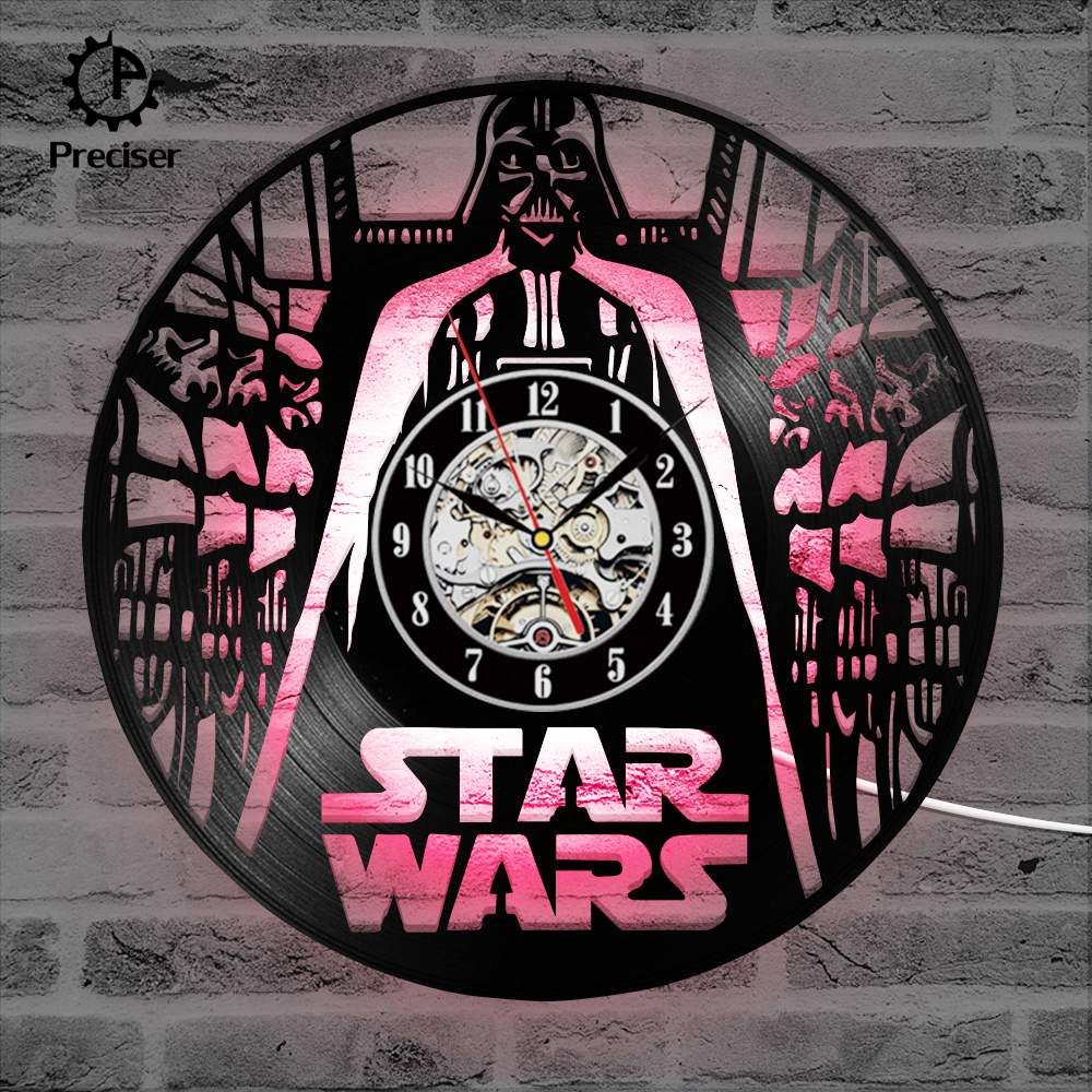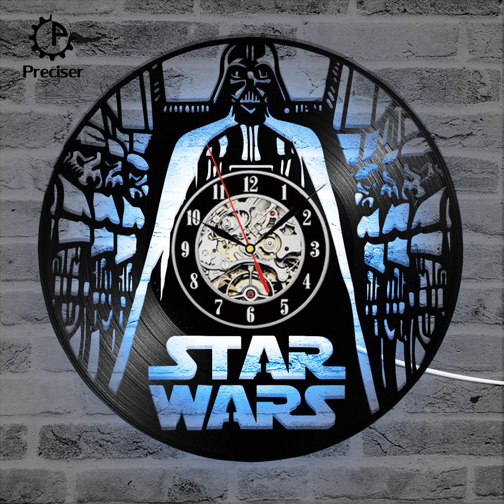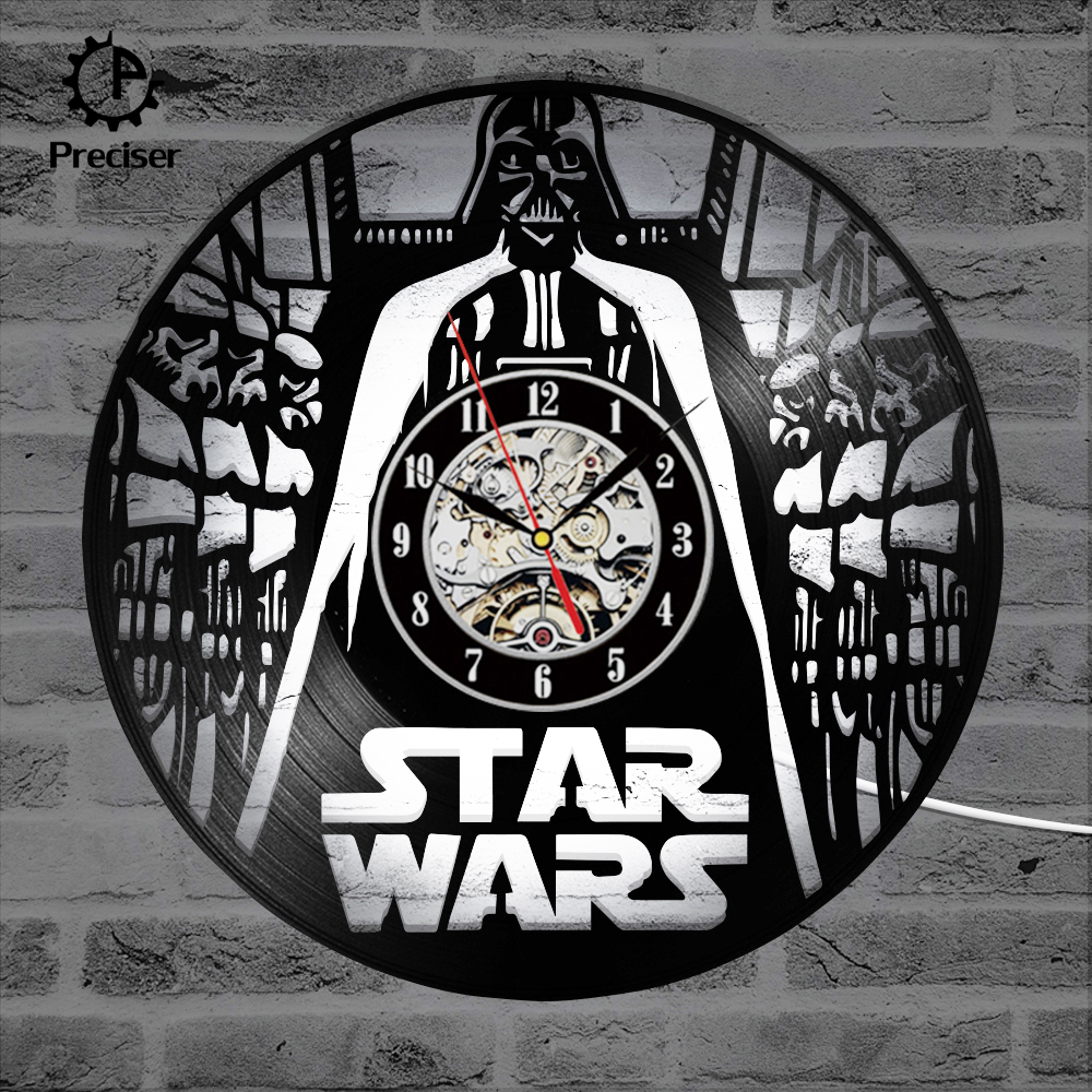Darth Vader Model Black Hollow CD Record Clock The Star Wars Theme Antique Style Vinyl Wall Clock Hot Sale Hanging Clock