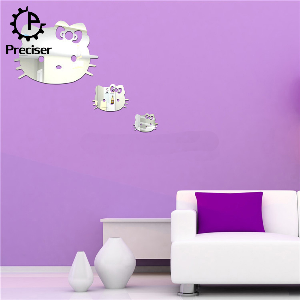 Preciser 3pcs Hello Kitty Cute Cats Crystal DIY Mirror Effect Reflective 3D Wall Stickers Home Decoration Living Room Bedroom Bathroom Decor Mural Decal adesivo de parede Removable Kid’s Room Design Art