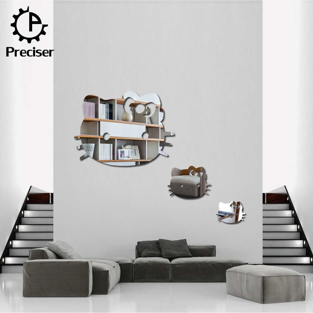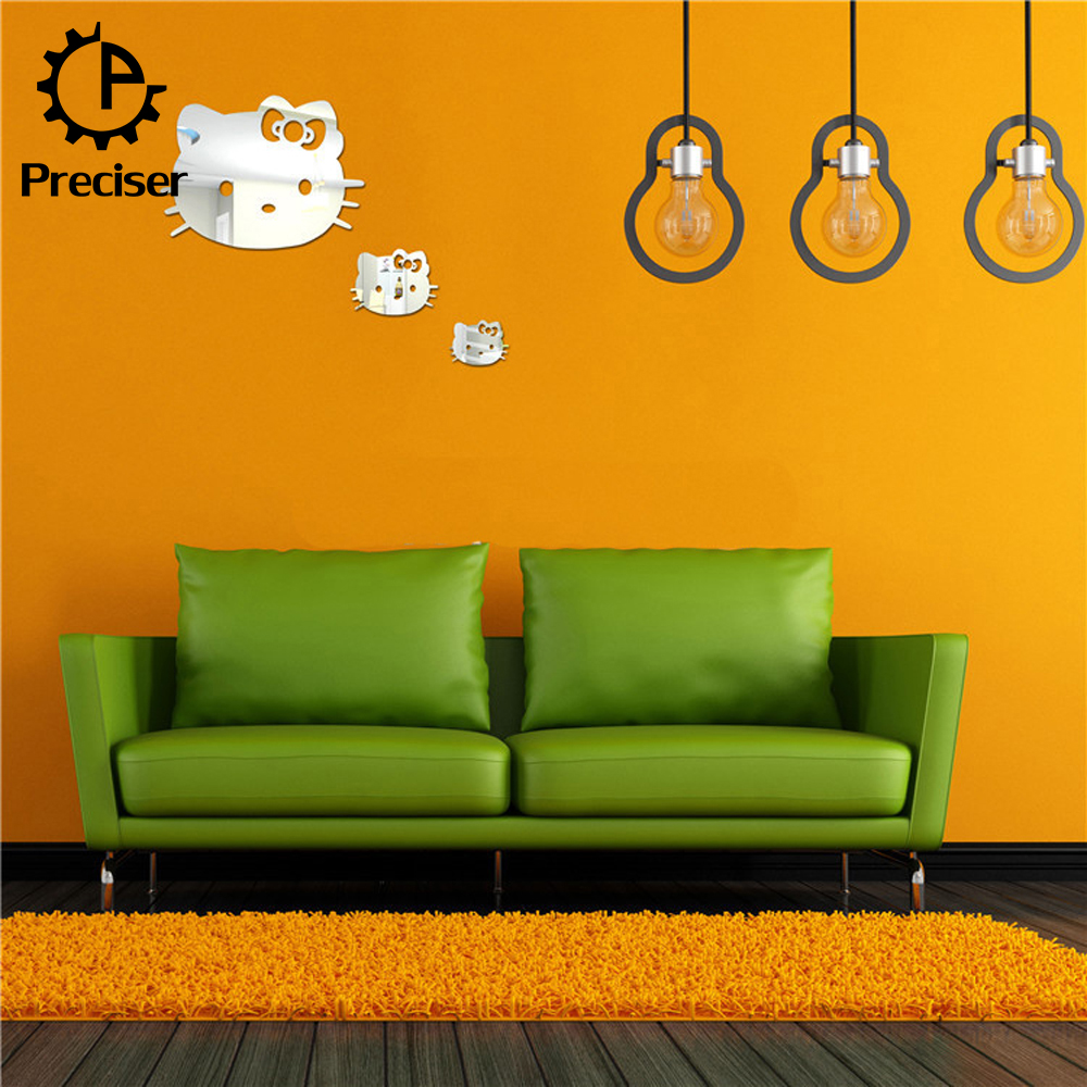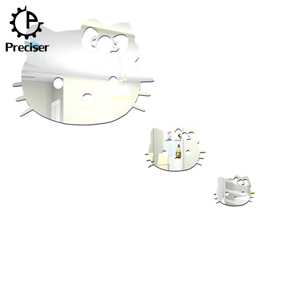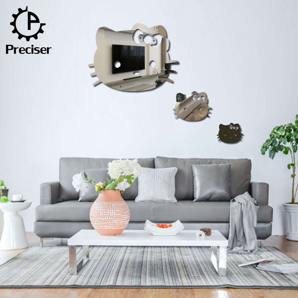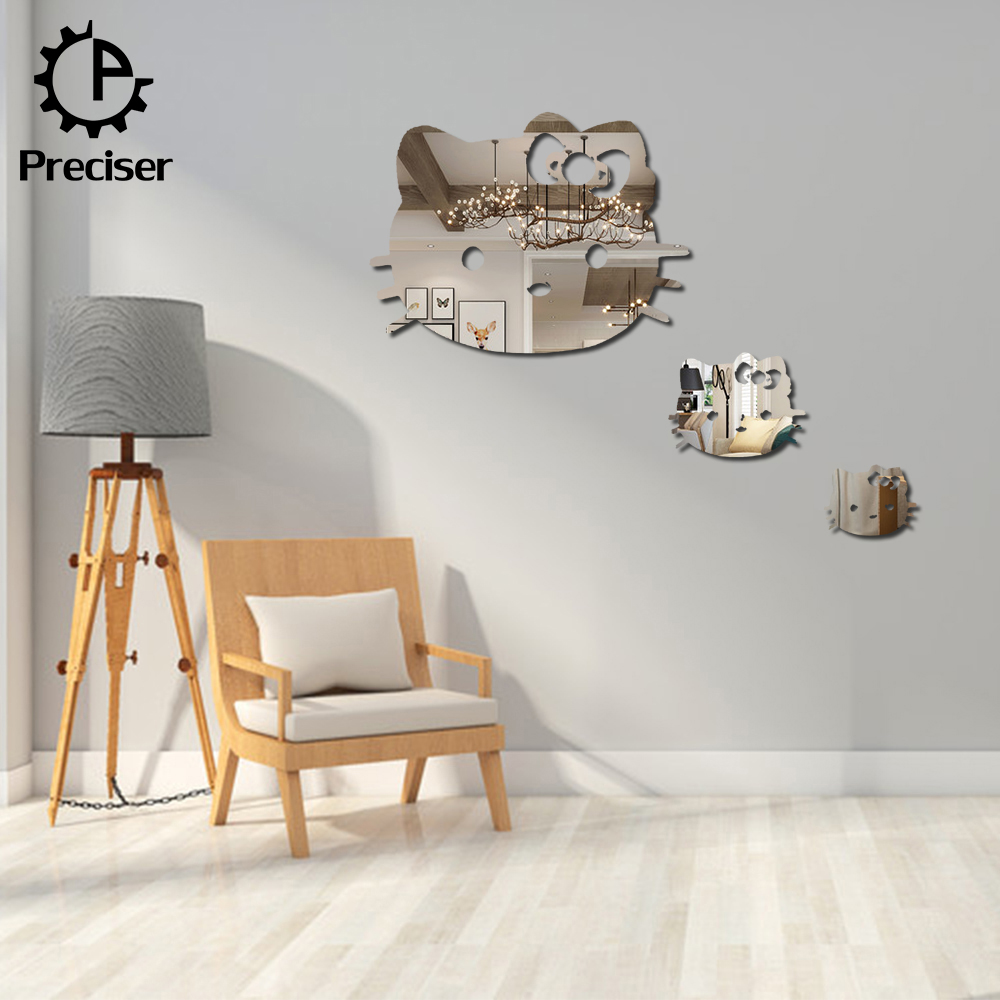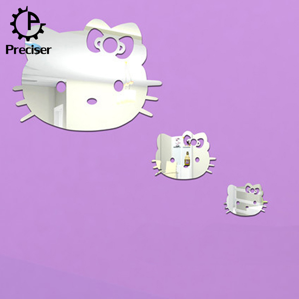 Preciser 3pcs Hello Kitty Cute Cats Crystal DIY Mirror Effect Reflective 3D Wall Stickers Home Decoration Living Room Bedroom Bathroom Decor Mural Decal adesivo de parede Removable Kid’s Room Design Art