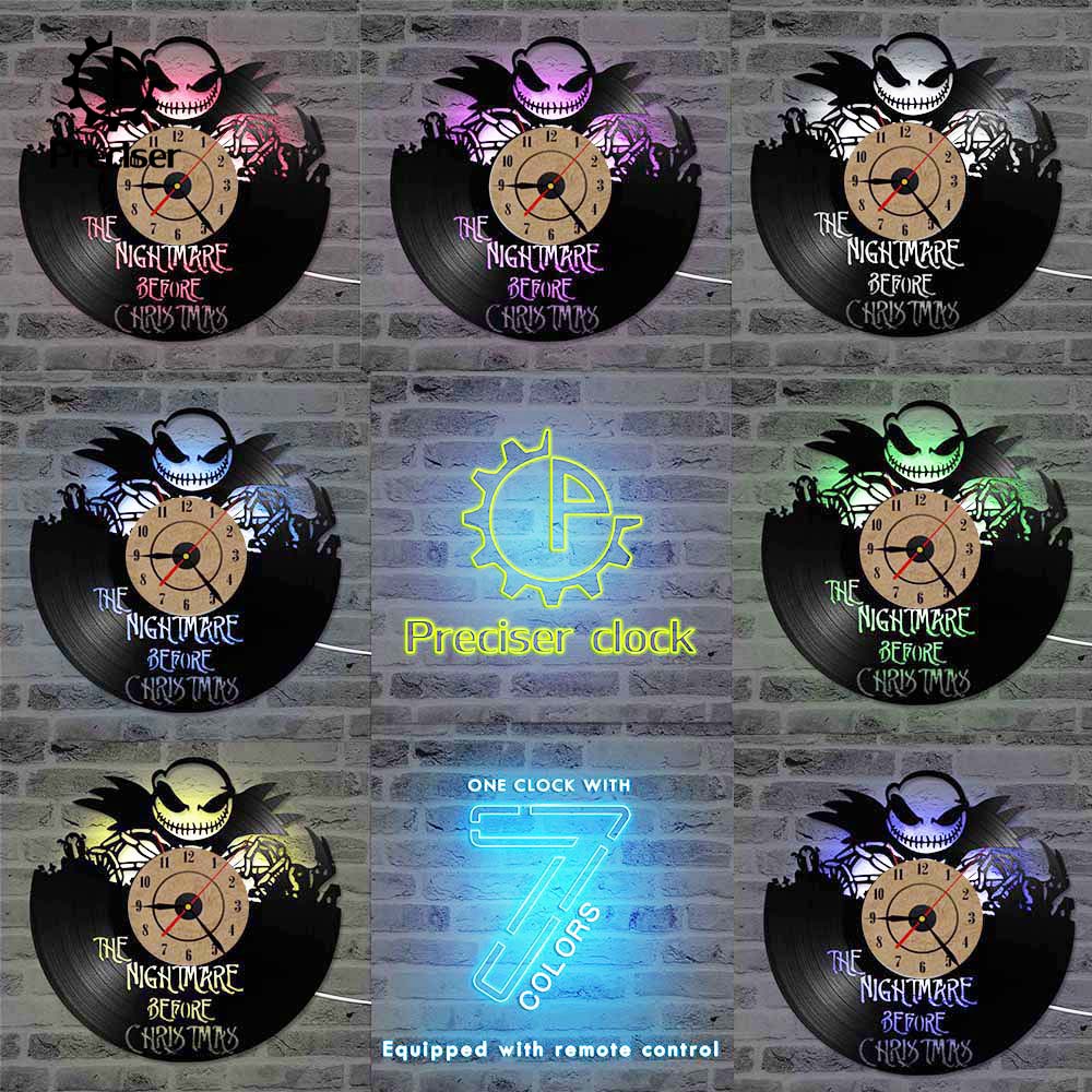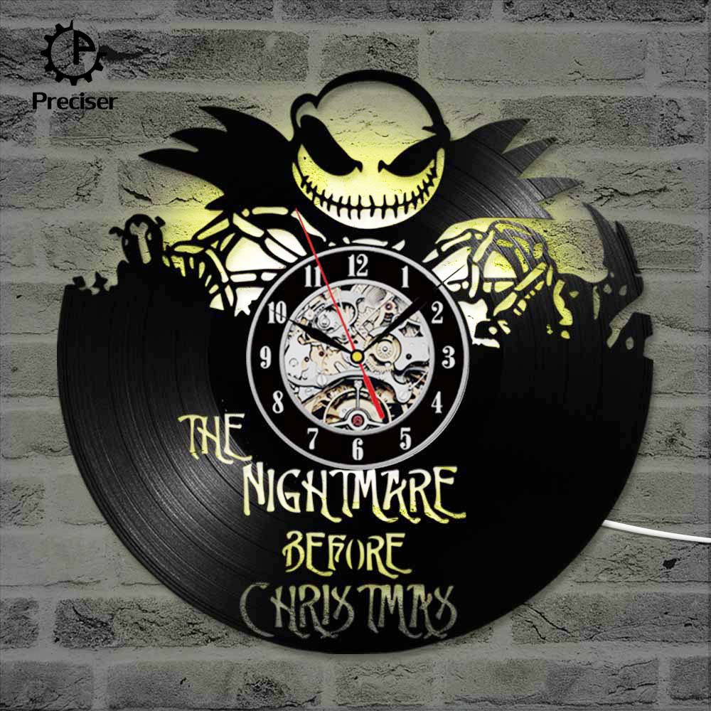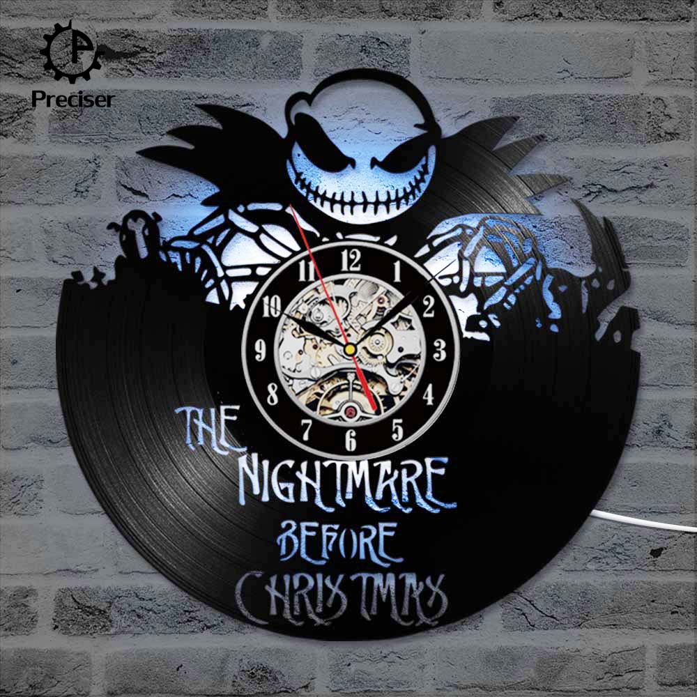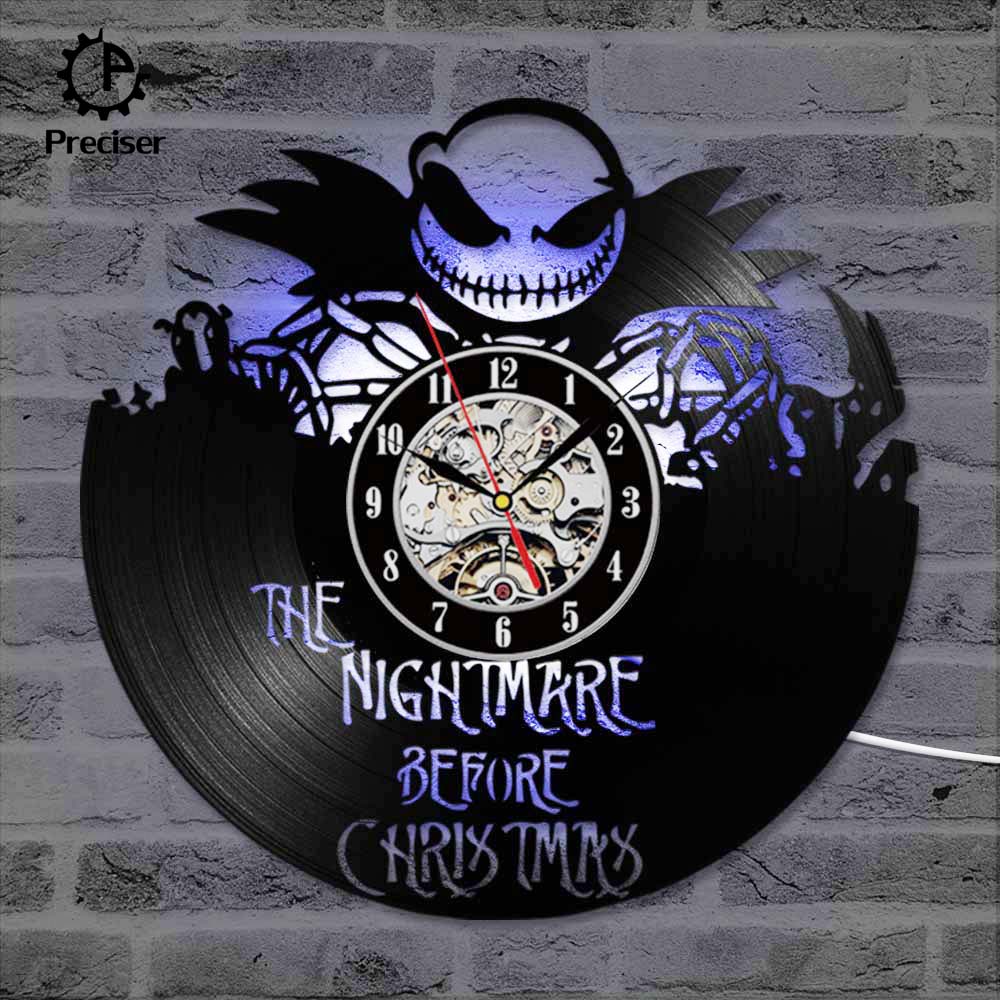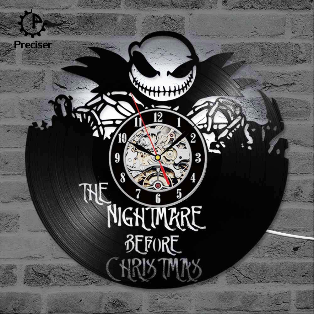 The Nightmare Before Christmas 3D Record Clock Classic Skull Vinyl Record Hanging Wall Clock Antique Style Wall Art Decor Clock