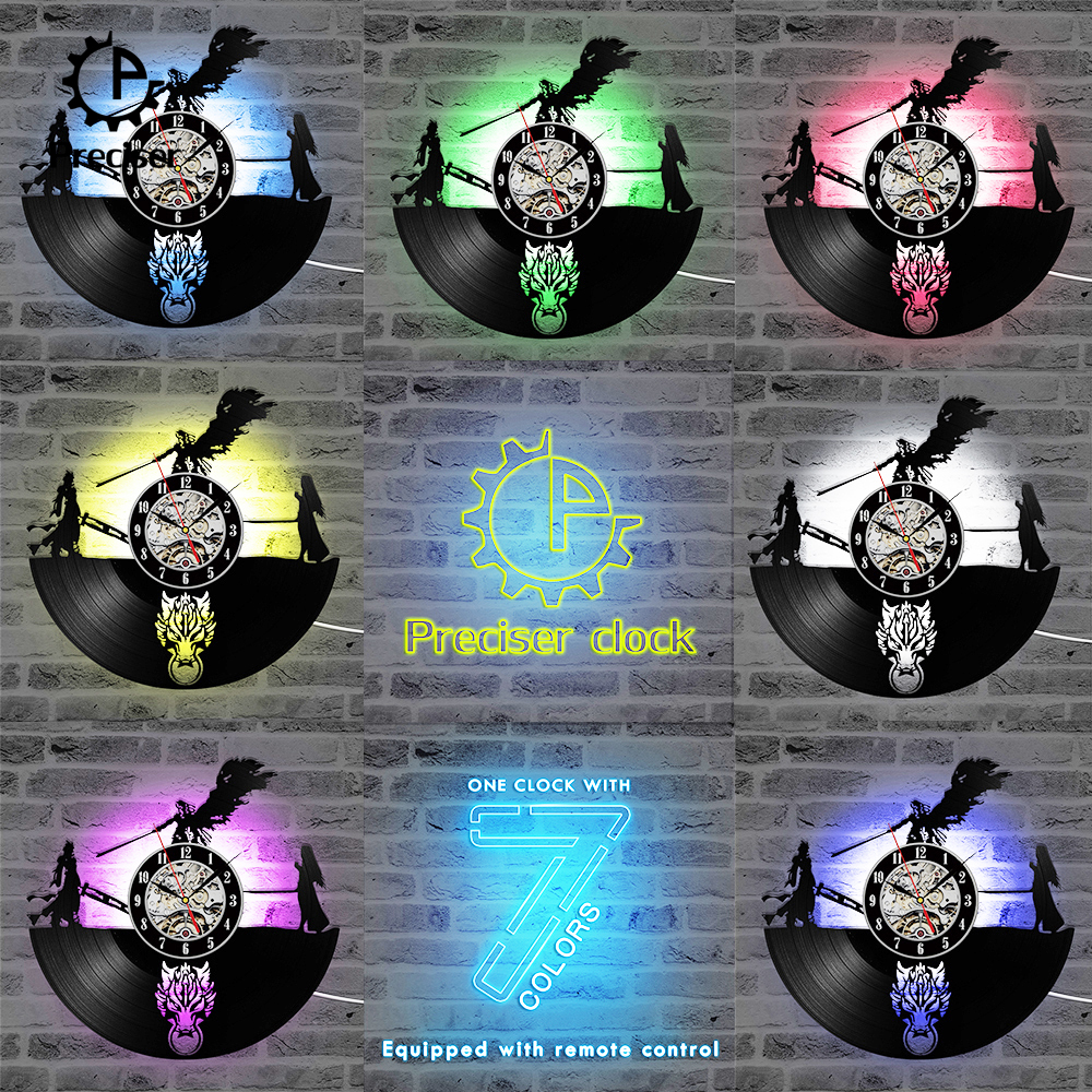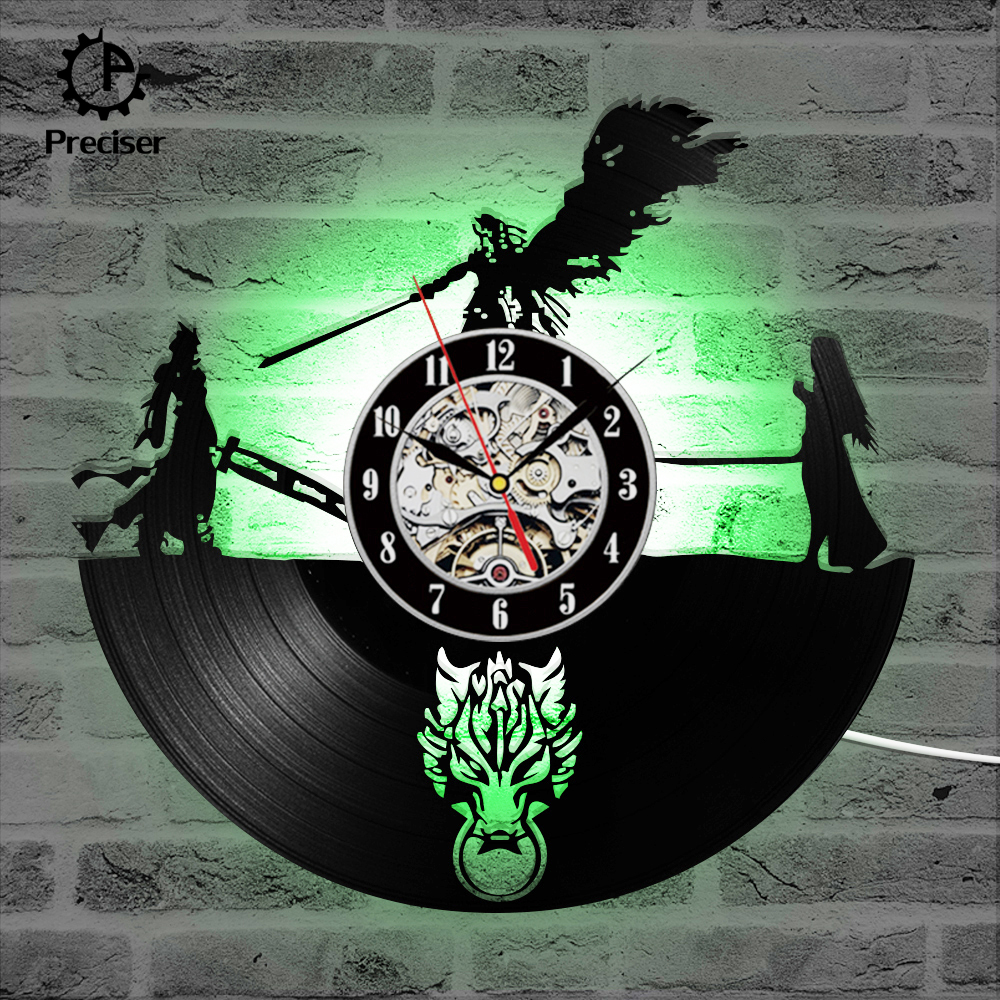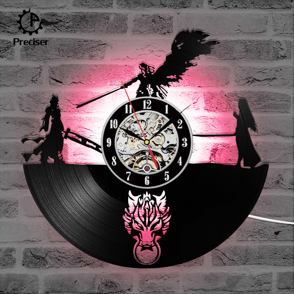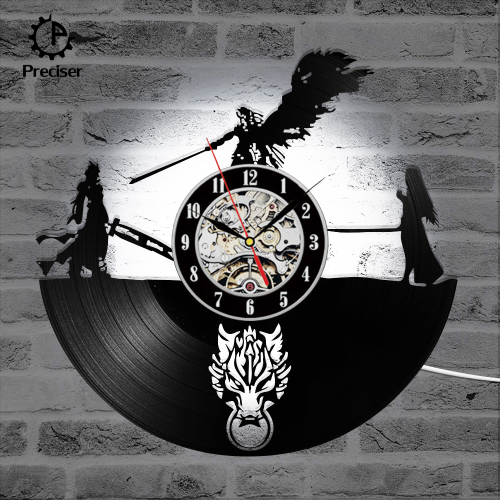 Final Fantasy 7 Adventure Anime Vinyl Record Clock Black Antique Style Wall Clock Classic Room Decortion Wall Clock