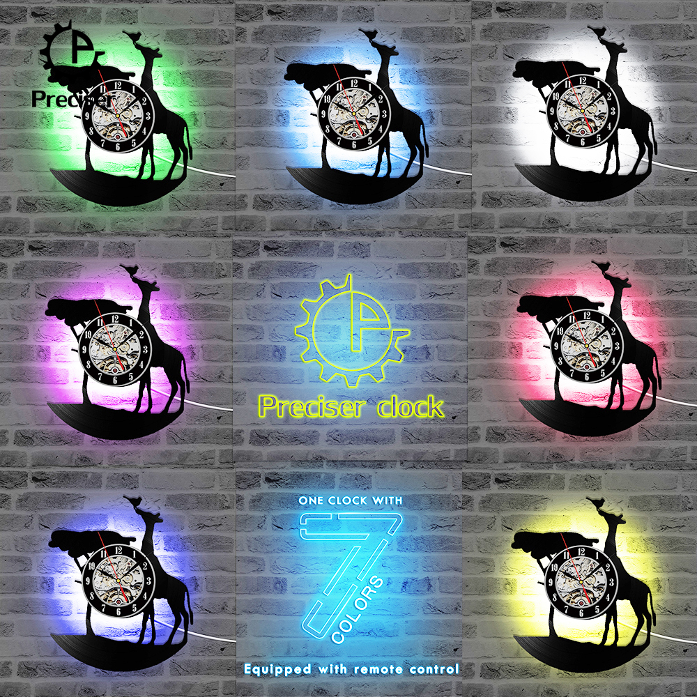 Giraffe Animals Theme Creative Retro CD Vinyl Record Wall Clock Vintage Mute Hanging Wall Clock Handmade Room Decor