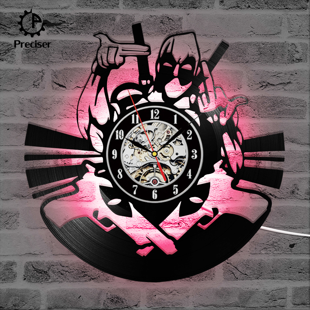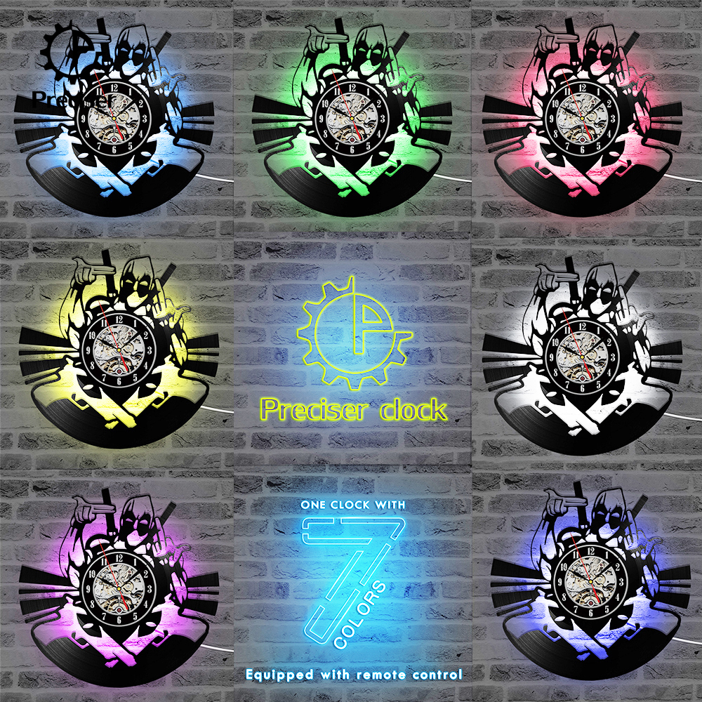 Handmade Vinyl Time Record Clock Marvel Comic Deadpool Wall Clock Home Decor For Kid Antique and Creative Hollow Black Clock
