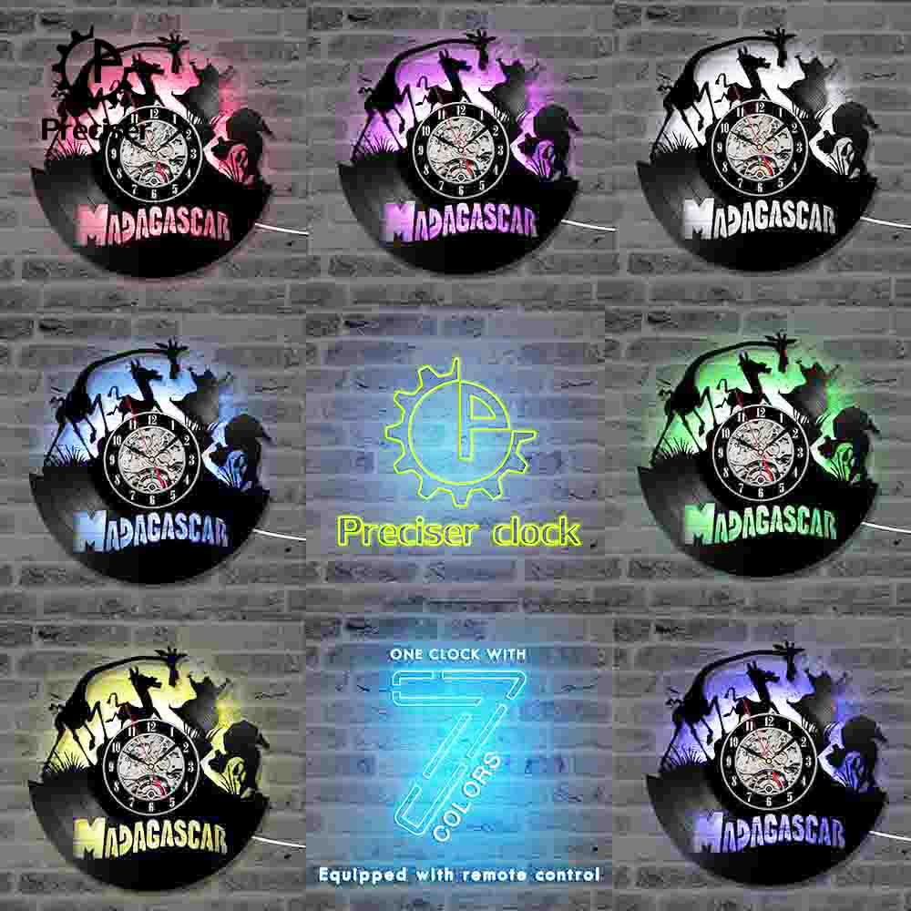 Vintage Handmade CD Record Clock Creative Cartoon Madagascar Hanging Wall Clock Hollow Antique Home Decoration