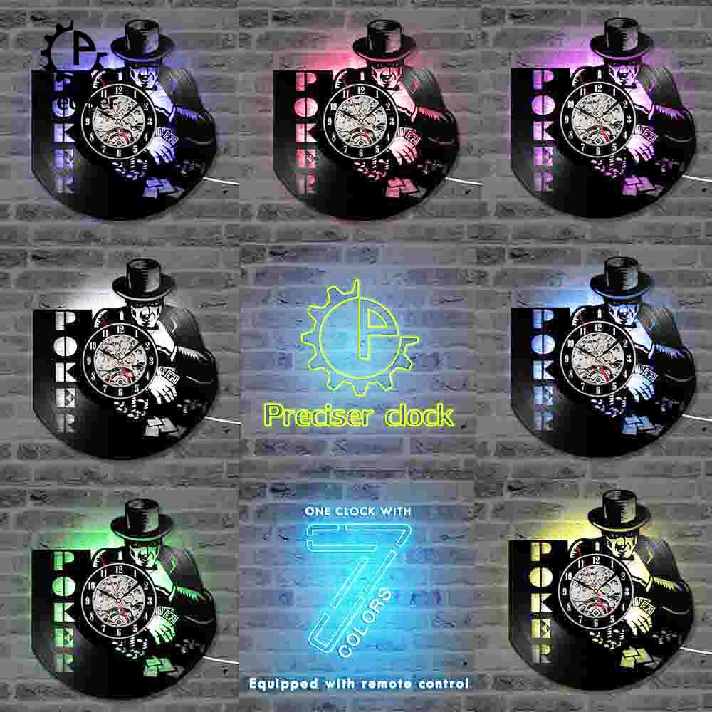 Poker Game Fashion Creative 3D Record Clock Vinyl Record Hanging Wall Clock Modern Wall Art Antique Style Home Decor Hanging Clock