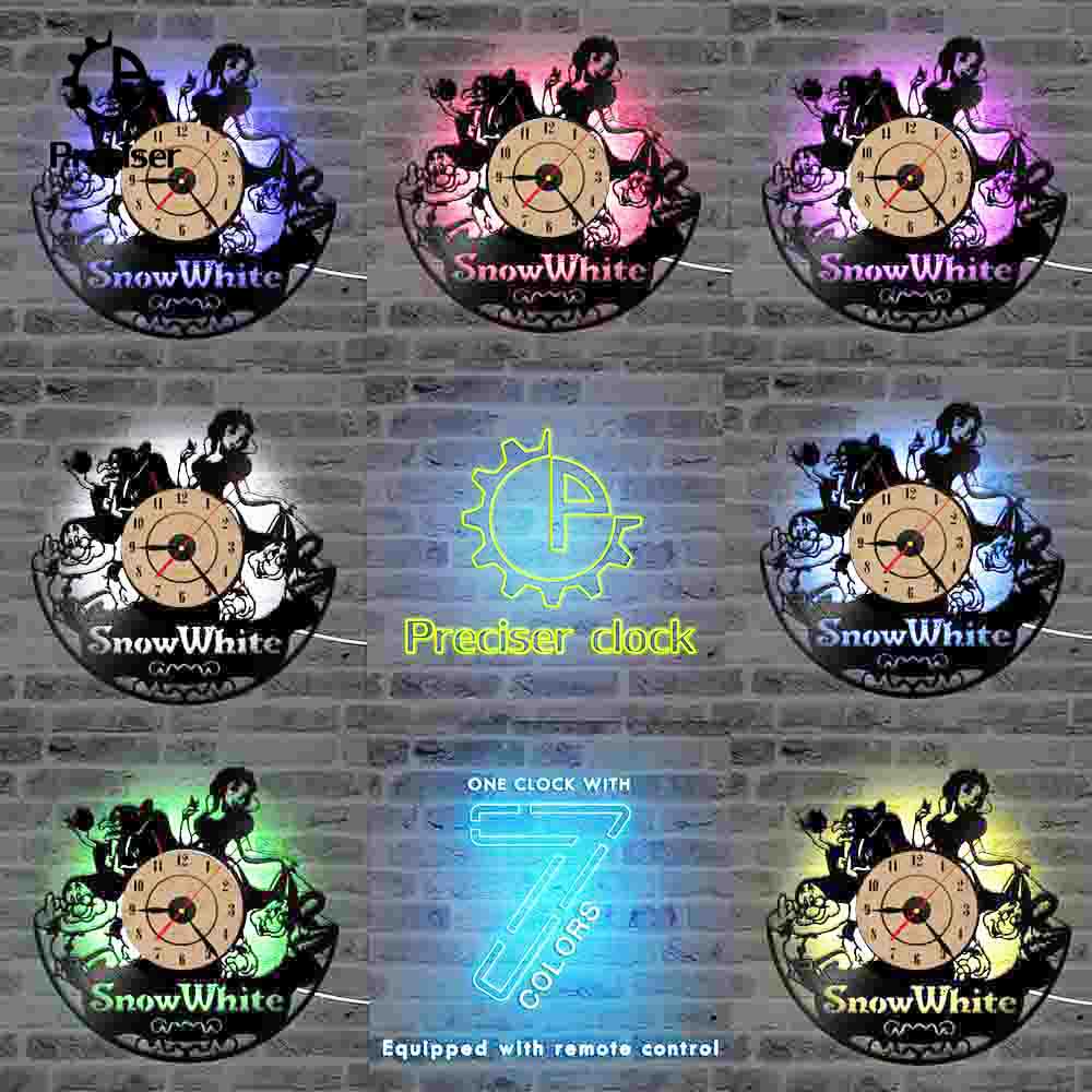 Snow White Fairy Theme Creative 3D Wall Clock Vinyl Music Record Wall Clock Antique Style Kid Room Decor Clock