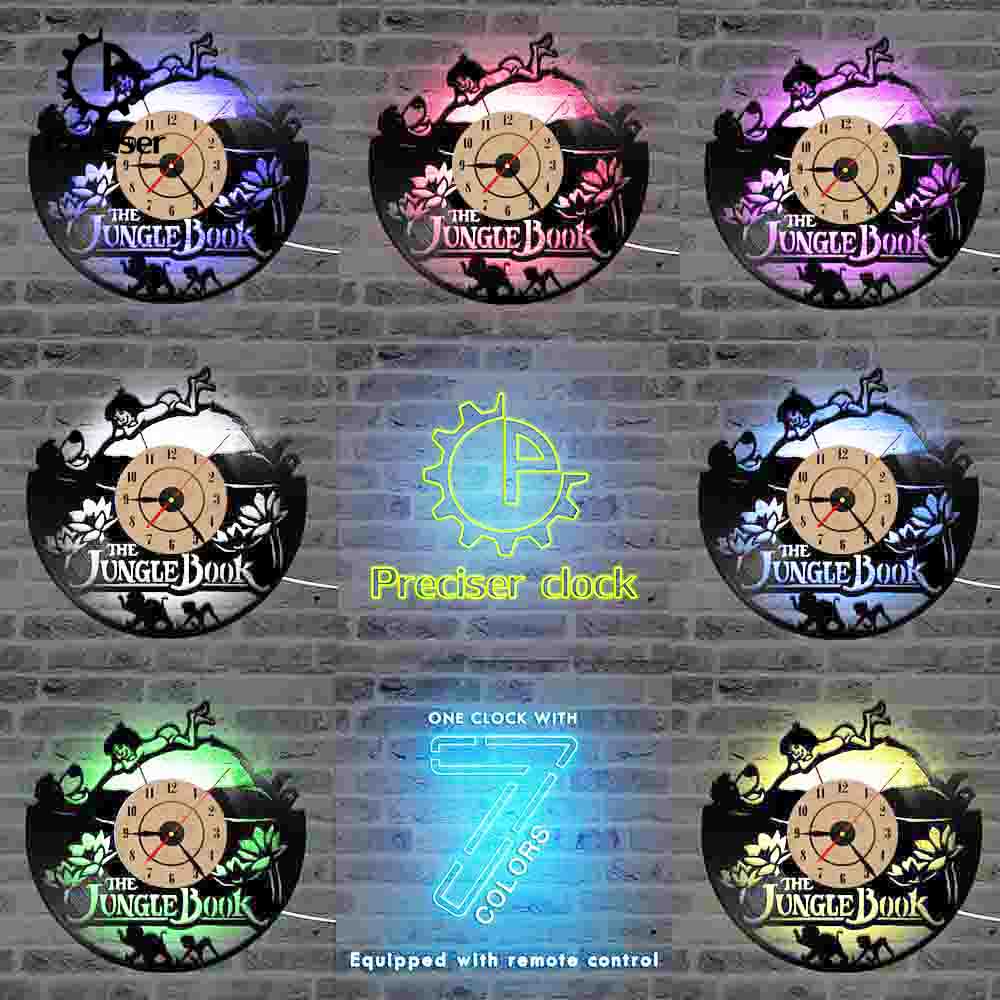 The Jungle Book Theme CD Record Clock Creative Vinyl LP Hanging Wall Clock Hollow Home Decor Antique Style Kids Room Wall Clock