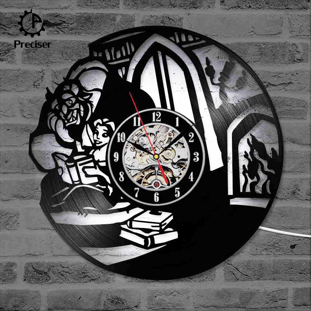 Beauty And The Beast Vintage Vinyl LP Record Wall Clock 3D Personalised Art Home Decoration Record Clock Handmade Decor