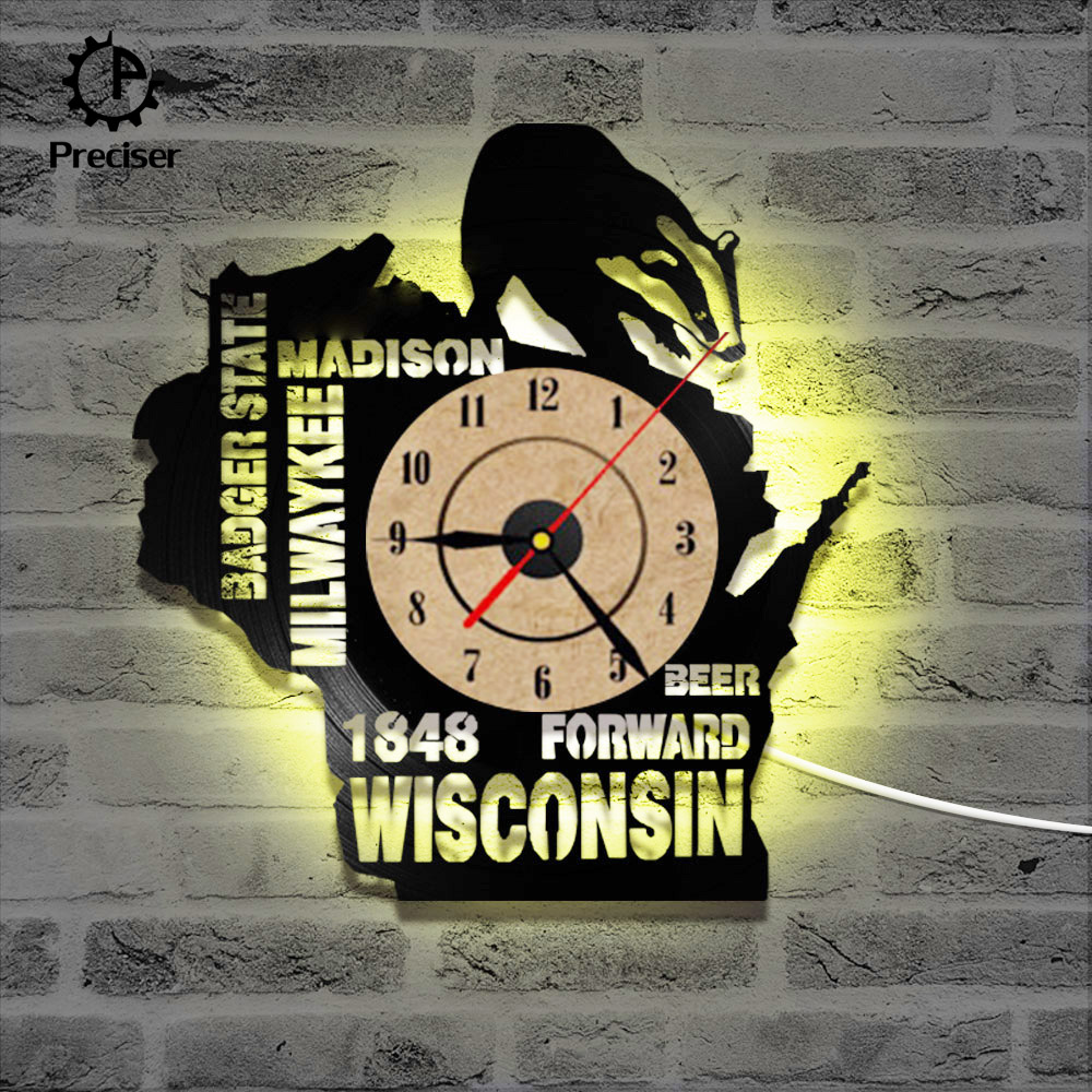 Hollow CD Record Clock Wisconsin USA States City Vinyl Record Hanging Clock Antique Style Handemade Wall Decoration