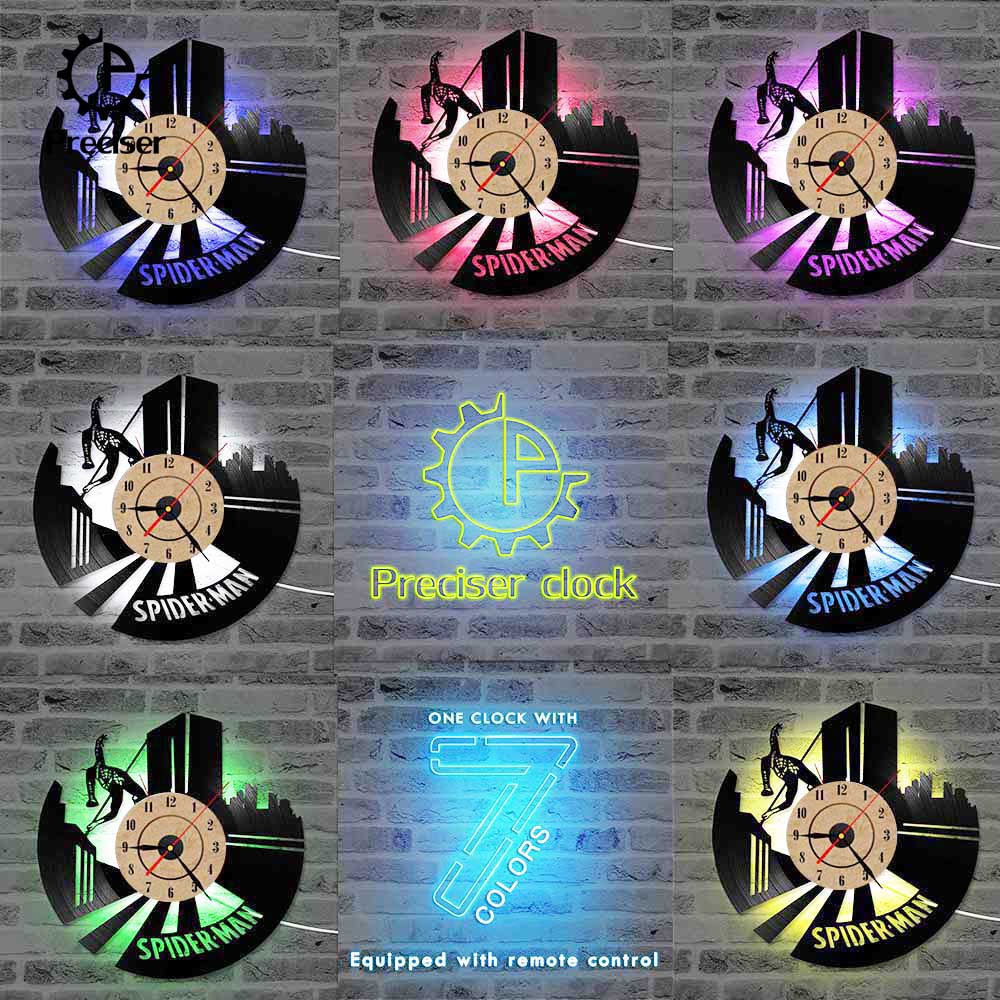 Superhero Spiderman Vinyl Record Wall Clock Vintage Art Personality LP Record Time Clock Home Decro Antique Style Hanging Clock Kid’s Room Decor