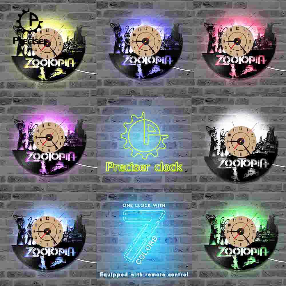 2018 Hot Popular Cartoon Movie Zootopia Theme CD Record Clock Creative Kids Room Decration Hanging Clock Antique Style Handmade Wall Clock